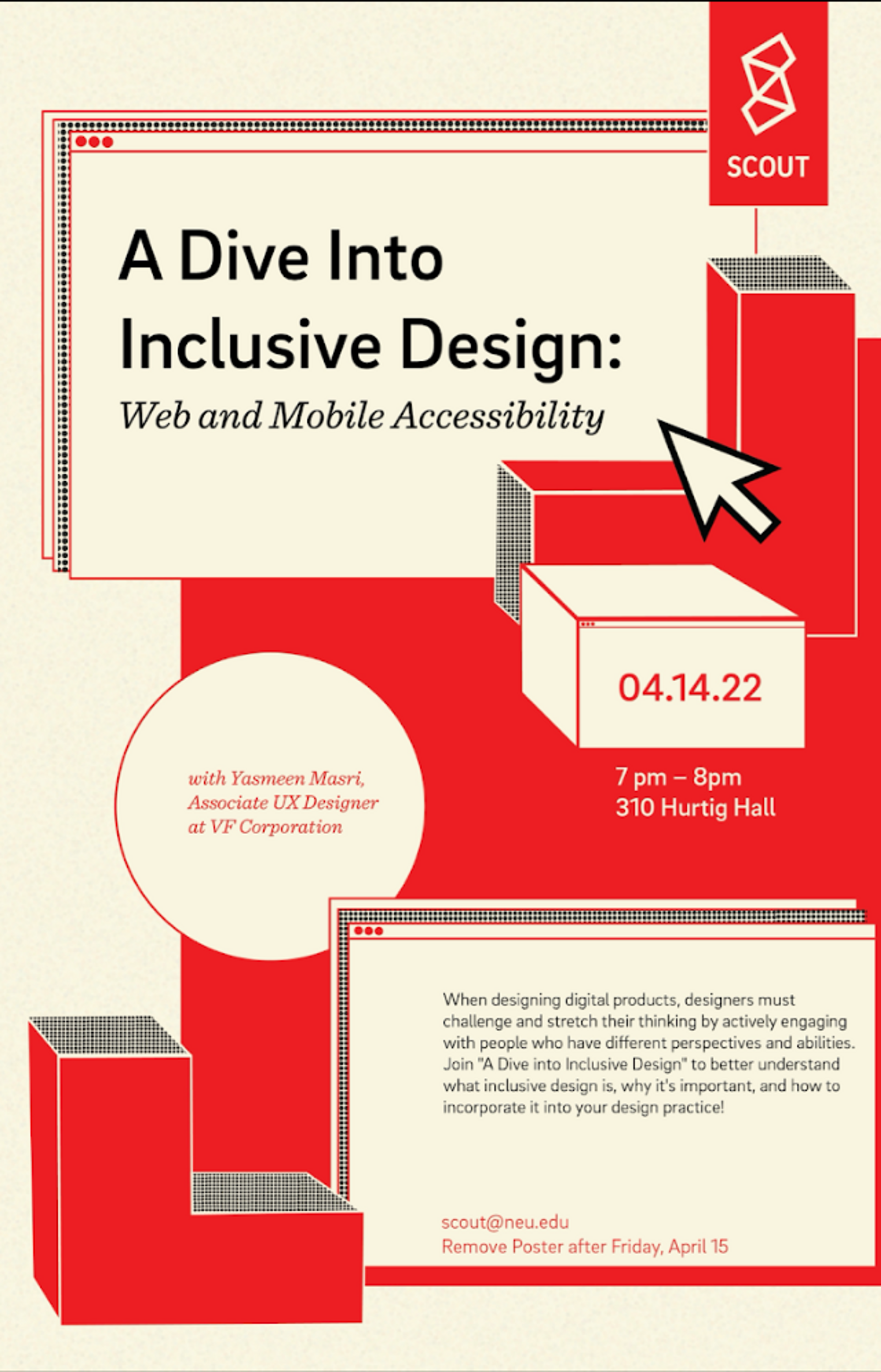 I’ve translated this passion and excitement for acting to public speaking, where I’m occasionally a guest speaker for school clubs. In my most recent experience, I gave a presentation on Inclusive Design for Scout, Northeastern’s Student Led Design Studio.