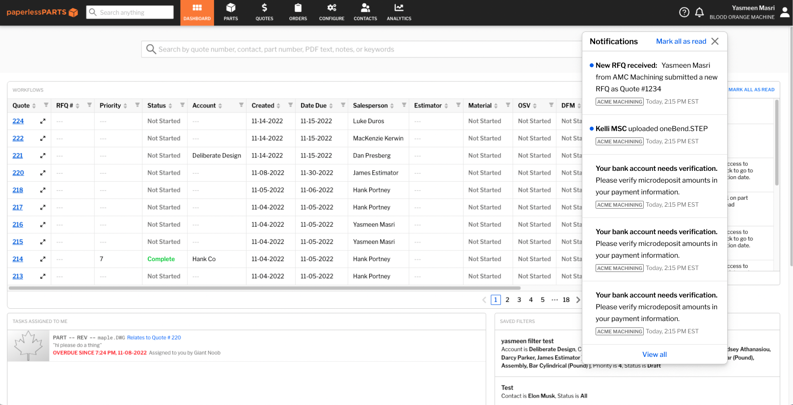 Paperless Parts’ notification system was in need of a redesign. It was outdated, had poor UX, had extremely low user engagement rate, and had immense potential for growth.